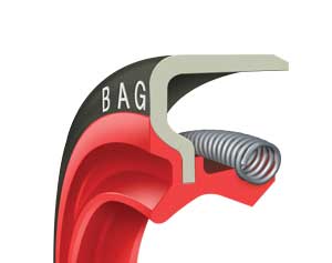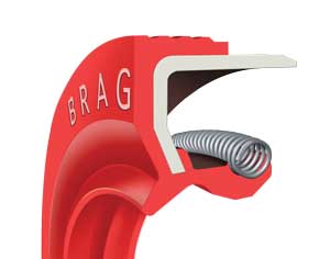 BRAG – Vedação principal com mola. Proteção contra poeira. Diâmetro externo: metade borracha e metade metal. Aplicados em motores e transmissões.